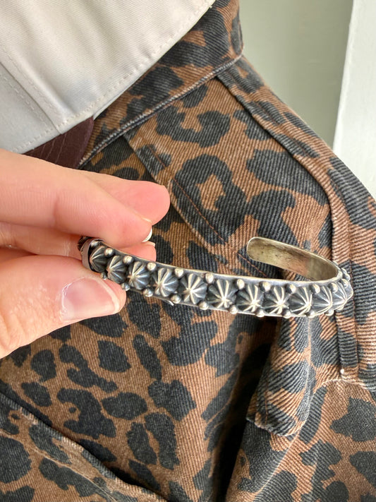Flower Swirl Stamped Silver Cuff