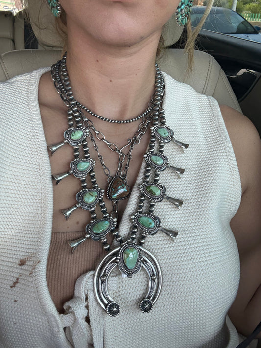 Kingman Turquoise Cluster Necklace made by Delbert Begay